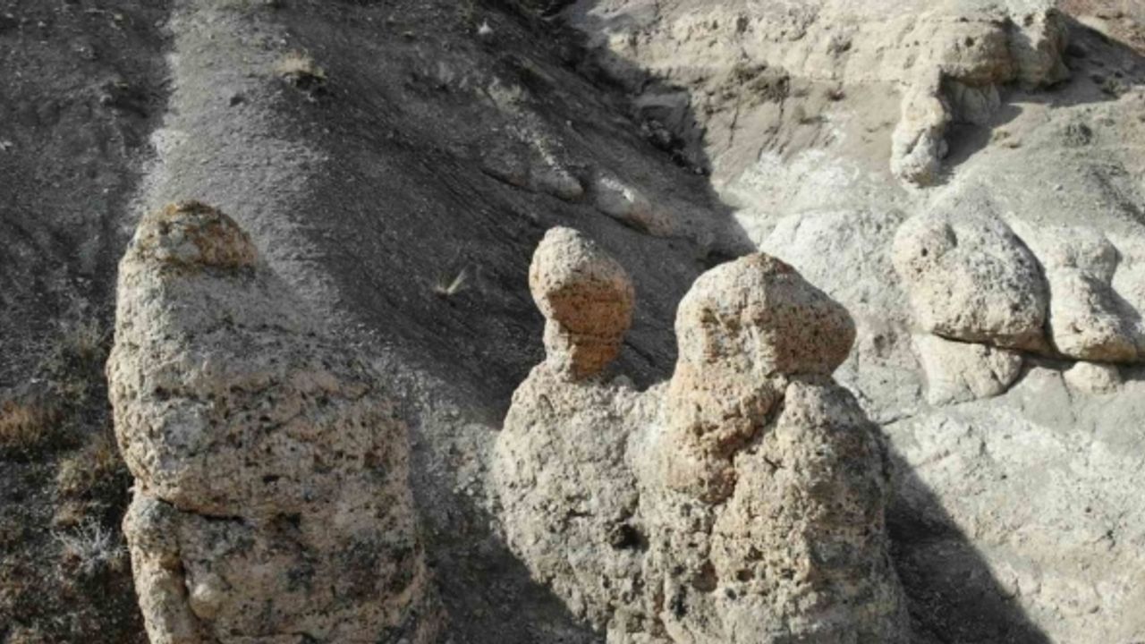 Tokat’tın Yeşilyurt ilçesinde insan siluetine benzeyen 10 metre yükseklikteki kayalar dikkat çekiyor.