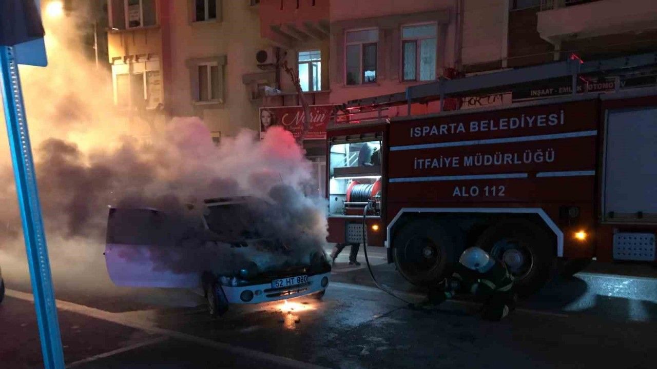 Isparta’da park halindeki otomobil elektrik kontağında meydana gelen kısa devre nedeniyle yandı.