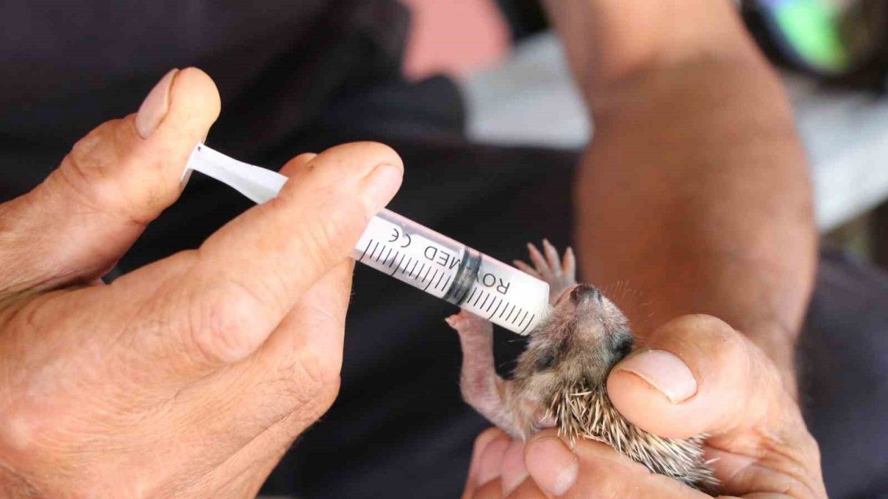 Bingöl’de yaklaşık 1 hafta önce bahçesinde ot biçen bir vatandaş, annesiz 6 kirpi yavrusuna rastladı. Durumu öğrenen Bingöl Belediyesi İtfaiye Müdürlüğünde 20 yıldır çalışan Hasip Bozkır, vatandaşla irtibata geçerek kirpi yavrularını teslim aldı. Daha sonra müdürlüğünün bahçesine getirerek kirpileri beslemeye başlayan itfaiye eri Bozkır, 1 haftadır kirpileri şırınga yardımıyla süt vererek hayatta tutmaya çalışıyor.