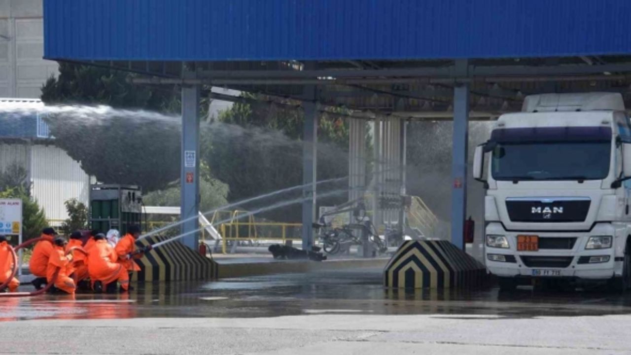 İtfaiye Haftası etkinlikleri çerçevesinde İzmir Büyükşehir Belediyesi İtfaiyesi Kuzey Bölge Amirliği, Aliağa ilçesindeki İnönü Bulvarı üzerinde bulunan bir dolum tesisinin işçileriyle ortak yangın tatbikatı yaptı.