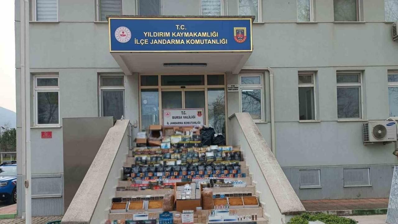 Bursa İl Jandarma Komutanlığı ekiplerince kaçakçılık ile mücadele edilmesine yönelik yapılan operasyonlar çerçevesinde alınan ihbarı değerlendiren Yıldırım İlçe Jandarma Komutanlığı ile KOM Şube Müdürlüğü ekipleri, Karapınar Mahallesi’nde bir işletmenin yakın çevresinde bulunan okullardaki öğrencilere ve vatandaşlara kaçak sigara sattığını tespit etti. Operasyon için düğmeye basan ekipler, A.T. (59) ve M.T.’ye (33) ait işletmede çok sayıda kaçak malzeme ele geçirdi. Ekipler, işletmeye yaptıkları operasyonda bandrolsüz olarak satılan ve yaklaşık değeri 1 trilyon 30 bin lira olan 24 bin 100 adet çeşitli marka sigara, 75 bin 499 adet makarona tütün basılmış sigara, 41 kilogram kıyılmış tütün, 38 bin 600 adet boş makaron, 58 bin 50 adet sigara kağıdı, 22 bin 540 adet sigara filtresi, 19 adet puro, 30 adet elektronik sigara ve 23 adet elektronik sigara likidi ele geçirdi. Bandrollü olarak satılan 69 bin 200 adet çeşitli marka makaron, 19 kilogram çeşitli marka tütün ve 82 adet çeşitli marka nargile tütünü ele geçirildi. Faturasız olarak satılan 6 adet bluetooth kulaklık ve 10 adet iPhone şarj aletine de el koyan ekipler, şahıslar hakkında adli tahkikat başlatarak 83 bin 709 lira idari para cezası kesti.