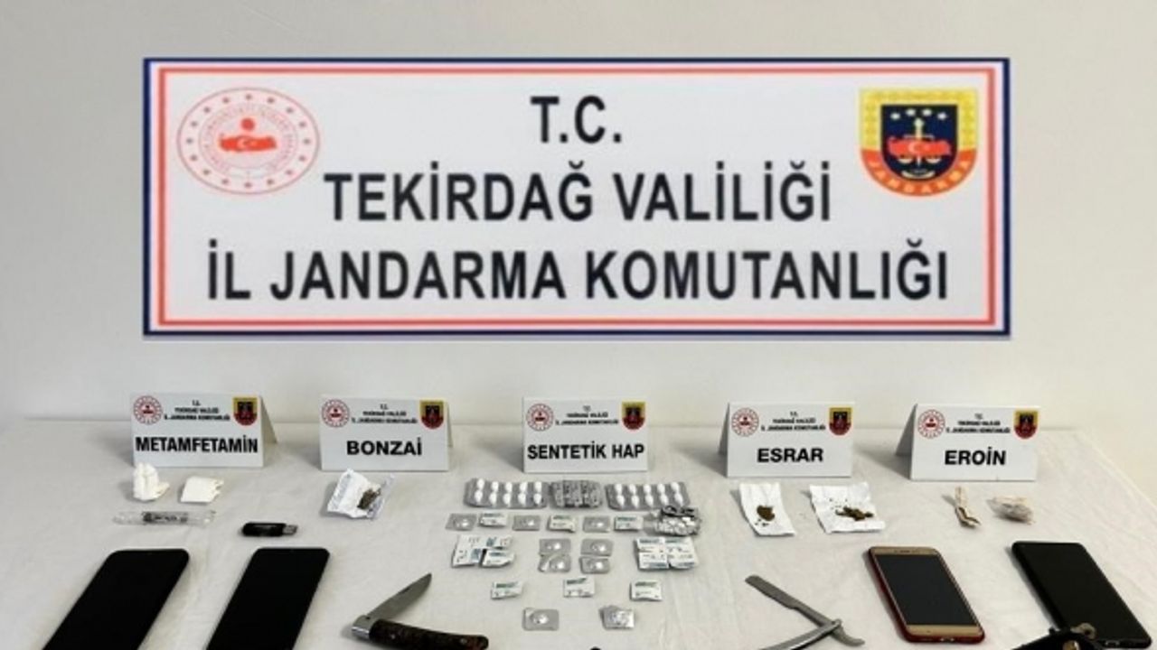 Tekirdağ İl Jandarma Komutanlığınca uyuşturucu ile mücadele kapsamında yapılan çalışmalarda, Kapaklı ilçesinde Uyuşturucu ve Uyarıcı Madde Ticareti yapan şahıslara yönelik olarak 9 adrese operasyon düzenlendi. Operasyonda, 1 gram eroin, 2 gram esrar, 1 gram metamfetamin, 2 gram bonzai, 52 adet renkli reçeteye tâbi sentetik hap, 1 adet uyuşturucu madde kullanma aparatı, 3 adet ruhsatsız tabanca, 22 adet tabanca fişeği, 2 adet bıçak, ele geçirildi.