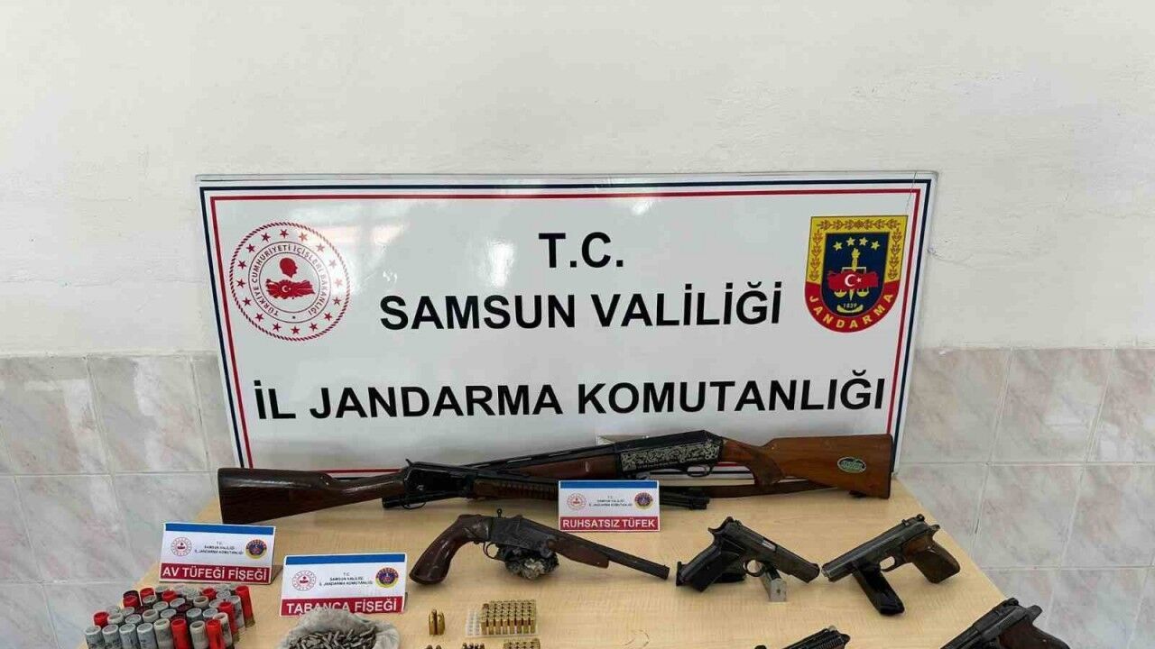 Samsun’da jandarma ekipleri tarafından düzenlenen operasyonda 4 tabanca, 3 tüfek ile çok sayıda mermi ve fişek ele geçirildi.