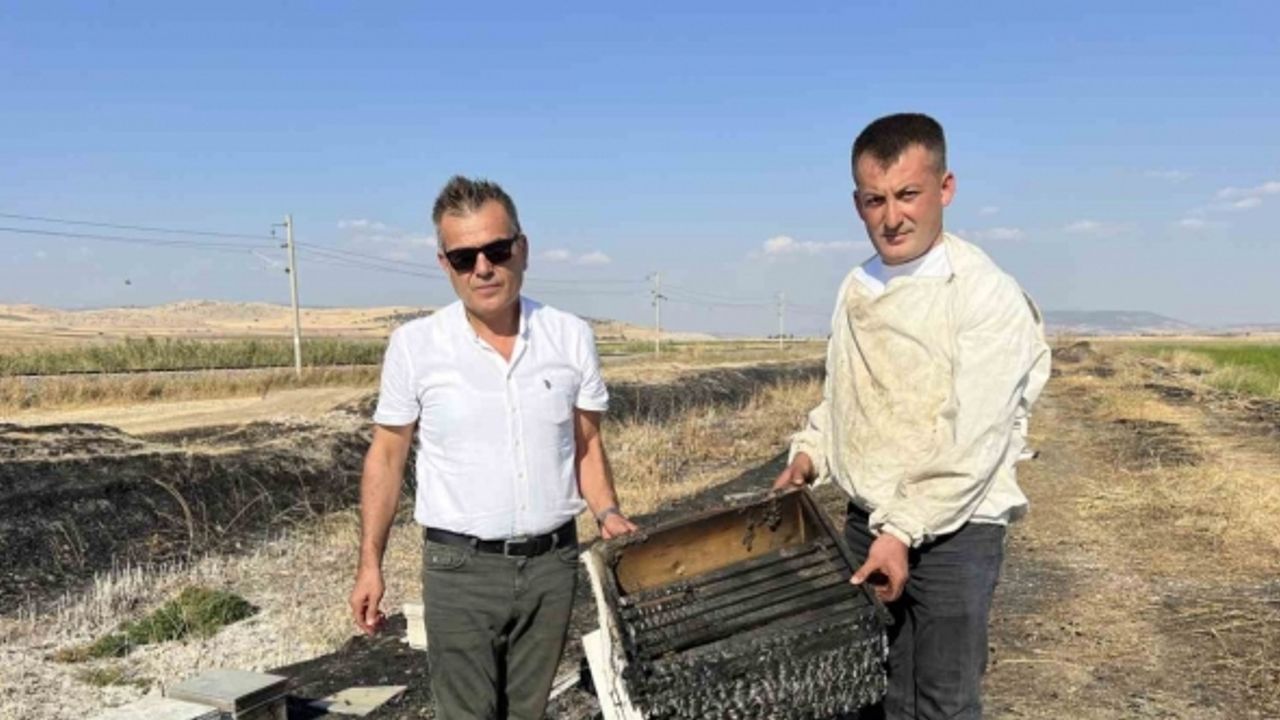 Arıcılıkla uğraşan Ahmet Köktaş, tek geçim kaynağı olan 150 kovan arısını beslenmesi için ayçiçeği ve pamuğun yoğunlukta olduğu Narlı ilçesine getirdi. Çıkan yangında arılarını kaybeden Köktaş, “Arılarımı ayçiçeğine, pamuğa getirmiştim burada arılarım telef oldu, yangın çıktı. Yangında 150 kovan kadar arım imha oldu. Yangının çıkış sebebini bilmiyorum, kimseden şüphelenmiyorum. Sadece buradan demek istediğim anız yakmasınlar, doğaya zarar vermesinler, arılarımız yok oluyor” dedi. Tek geçim kaynağının arıcılık olduğunu dile getiren Köktaş, "Mağdur durumdayım, ekmeğimi kaybettim" dedi.