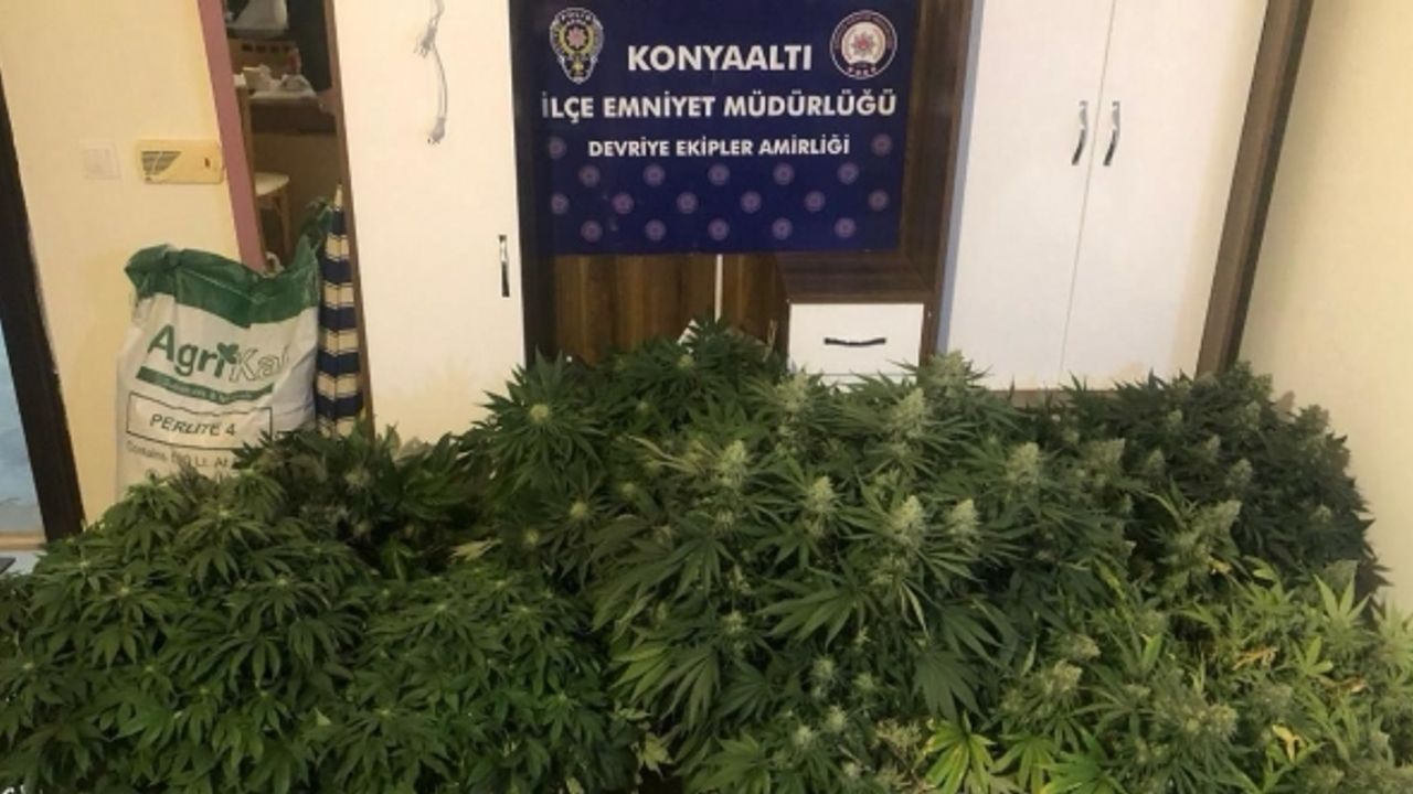 Konyaaltı İlçe Emniyet Müdürlüğü ve Narkotik Suçlarla Mücadele Şube Müdürlüğü görevlilerince müşterek yapılan çalışmalarda Sarısu Mahallesinde bulunan bir ikamette yabancı uyruklu K.A.’ nın uyuşturucu madde sattığı bilgisine ulaşıldı. Eve yapılan operasyonda 6 adet çadır, 22 adet hava nemlendirici, 6 adet konvektör, 6 adet klima, 3 adet ısı ölçer, 8 adet bitki yetiştirme lambası, 4 adet hassas terazi, yaklaşık 1 kilogram keten tohumu, - 140 kök kenevir ve 8 paket halinde esrar maddesi ele geçirildi.