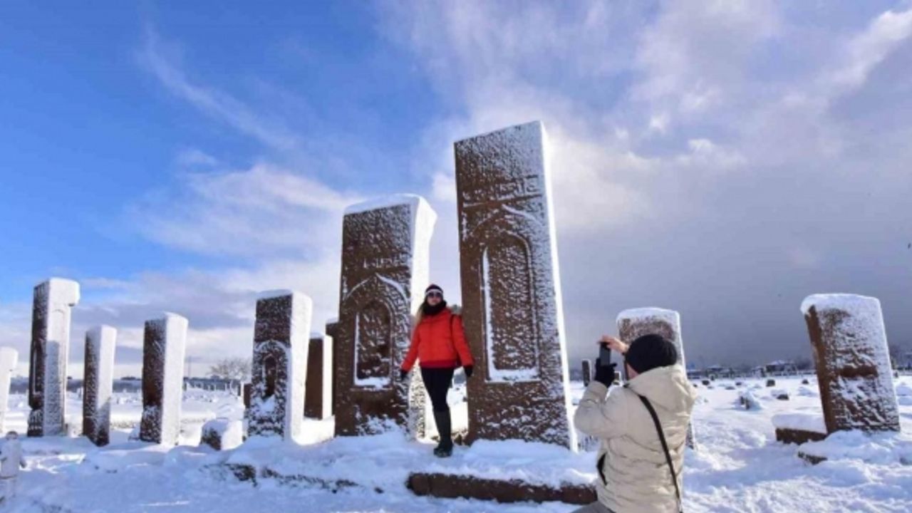 UNESCO Dünya Kültür Mirası geçici listesinde yer alan dünyanın en büyük Türk İslam Mezarlığı olma özelliğine sahip Ahlat Selçuklu Meydan Mezarlığındaki tarihi mezar taşlarının karla bütünleşmesi görenleri kendine hayran bırakıyor. ’Anadolu’nun Orhun Abideleri’ olarak da adlandırılan 210 dönüm alanda kurulu Ahlat Selçuklu Meydan Mezarlığındaki mezar taşının üzerindeki yazılar, kabartmalar, nakış ve işlemeler, karla bütünleşince seyrine güzel görüntüler oluştururken ziyaretçilerden de yoğun ilgi görüyor.