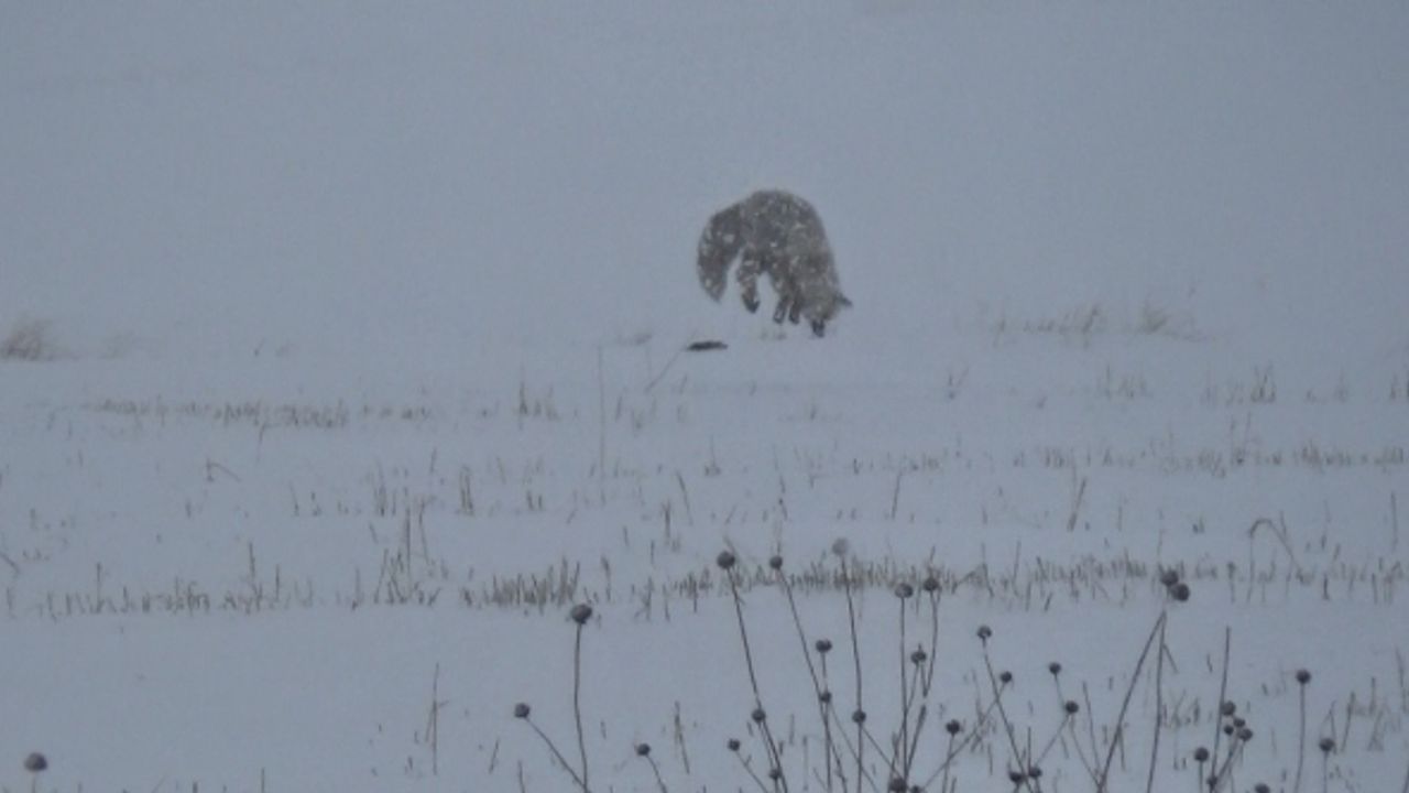 Kentte etkili olan kar yağışı ve soğuk hava, yaban hayatını da olumsuz etkiliyor. Yiyecek bulmak için Kars-Çıldır karayolu yakınlarında avlanan kızıl tilkiler, dakikalarca sesleri dinleyerek avını yakalamaya çalışıyor.