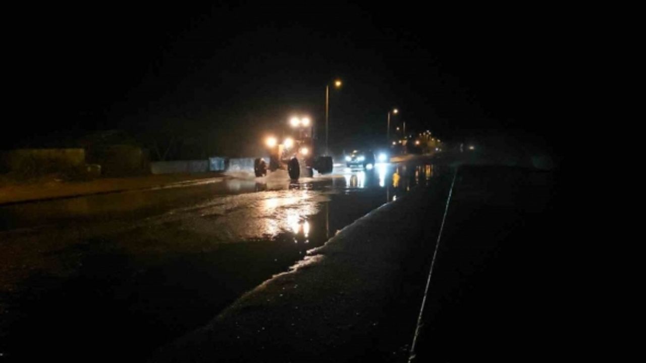 Ekipler, yolda biriken suyun tahliye edilmesi için çalışma başlattı.