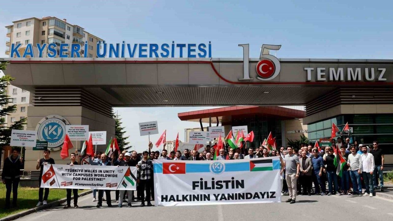 Kayseri Üniversitesi tarafından Filistin halkına destek etkinliği çerçevesinde ’Gazze’deki Soykırıma Dur De’ yürüyüşü gerçekleştirildi.