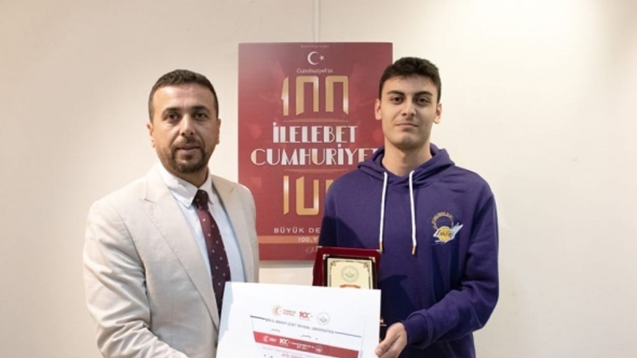 Karabük Üniversitesi öğrencisi Halil Tükenmez, “İlelebet Cumhuriyet İlelebet Türkiye Yüzyılları” konulu afiş tasarım yarışmasında mansiyon ödülü almaya hak kazandı.