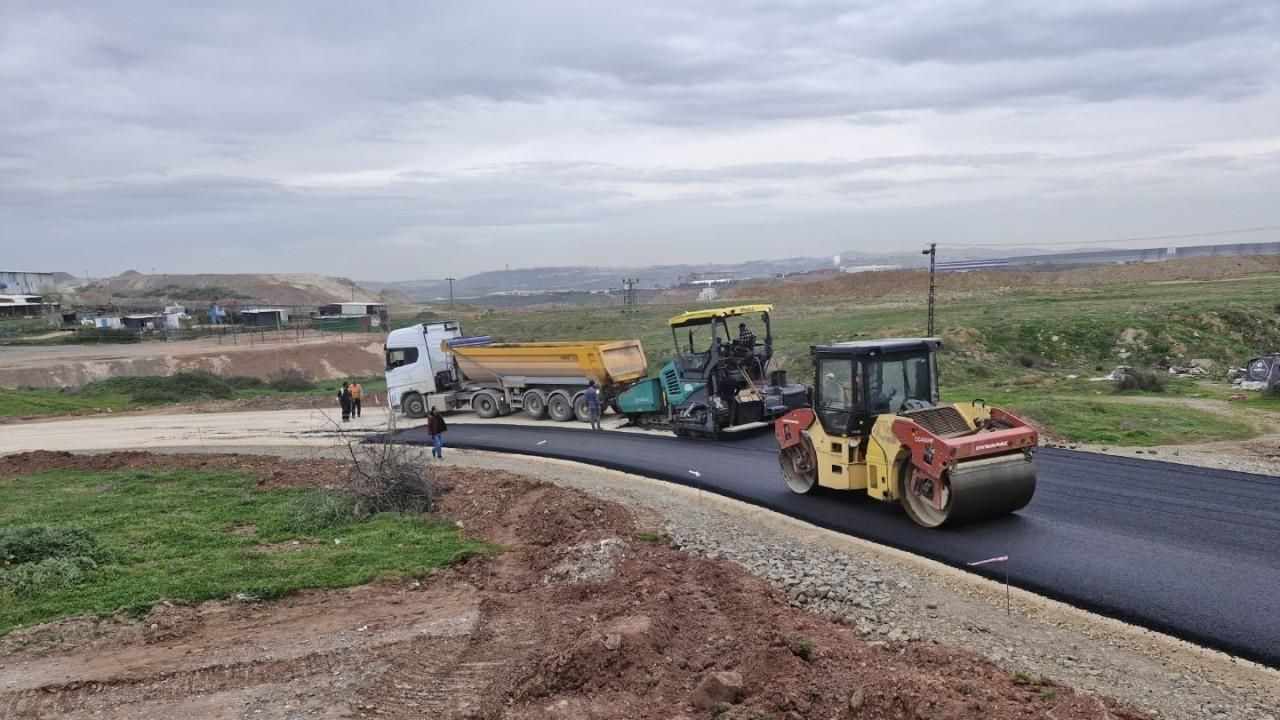 Gebze Kirazpınar Mahallesinde TOKİ Konutları ve Küme Evlerine ulaşımın sağlandığı yolda üstyapı çalışmaları yapılıyor.