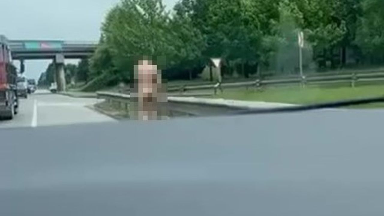Kocaeli D130 Karayolu’nda bir şahıs, üstünü çıkararak çırılçıplak dolaştı. O anlar vatandaşların cep telefonuna yansıdı.