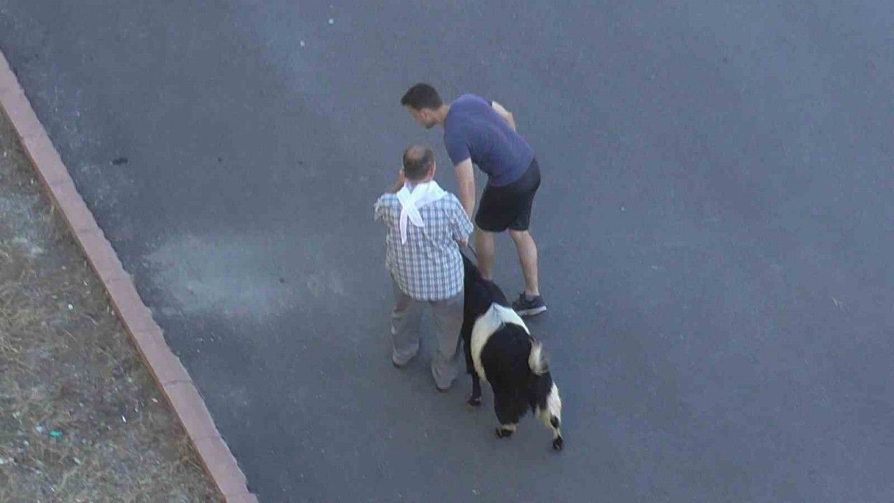 Edinilen bilgiye göre, Hacıakif Mahallesi’nde kurban edilmek istenen bir keçi, bulunduğu yerden ipini kopararak kaçmaya başladı. Kurbanlık sahibi firari keçisini yakalayabilmek için kendisine yardım edenlerle birlikte peşine düşerken mahalledeki sokak aralarında bir süre kovalamaca yaşandı. En son olarak Şehit Hasan Metli Caddesi üzerinde koşarak uzaklaşmaya devam ettiği görülen keçi, 5 katlı bir binanın bahçesine girdi. Peşinden koşan kurbanlık sahibi ve yardım edenler kurbanlık keçiyi güçlükle de olsa yakalamayı başardı. Boynuzundan tutulan firari keçi, kurban edilmek üzere kaçtığı yere yeniden götürüldü.