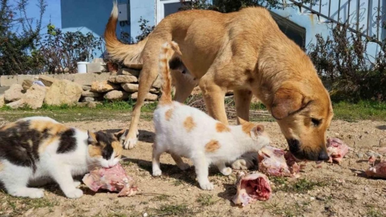 Köpek ve kedinin dostluğundan bahseden Mehmet Yaşar Durmuş, “Köpeğin yavruları vardı, süt veriyordu. Köpekler kendi yavrularına süt verirken annesi olmayan kedilerde gidip köpeği emmeye başladı. O gün bu gündür son iki yıldan beri ke ile köpeğin dostlukları var. Halen de memelerini emiyor, sütünü içiyorlar köpeğin. Köpek kendi dahi bir yere gittiği zaman bir yerden yemek, bizim yemek vermediğimiz zaman habersiz yemek getirmişse dahi kedilerle paylaşıp halen yemeye devam ediyorlar. Kedilerin ve köpeğin dostluğunu ben insanlardan da beklerim” diye konuştu.