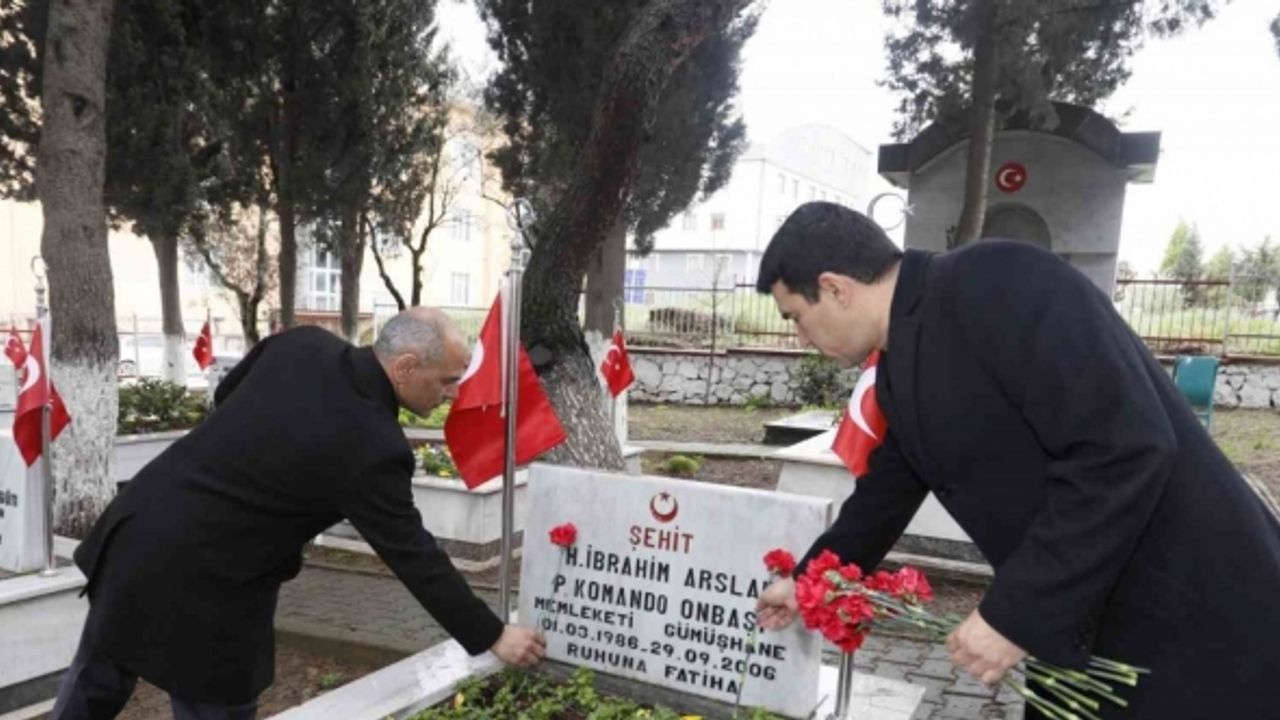 Çanakkale Zaferi yıl dönümü dolayısıyla Körfez Şehitliği’nde düzenlenen törende şehit mezarlarına karanfil bırakıldı.