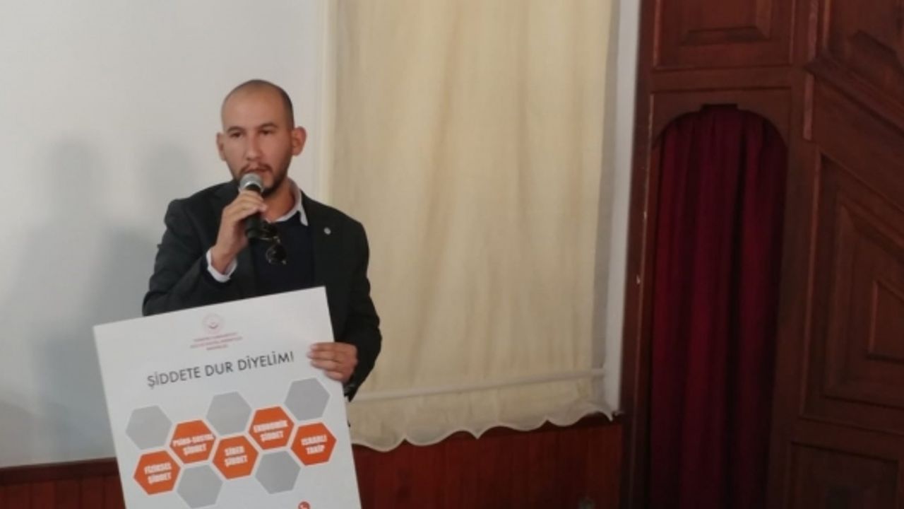 Açılış konuşmasından sonra İlçe Sosyal Hizmet Merkezinden Psikolojik Danışman Okan Demir tarafından katılımcılara “Aile İçi Şiddet ve Kadına Yönelik Şiddetle Mücadele”, “Aile de Merhamet Eğitimi” konularında seminer verildi.