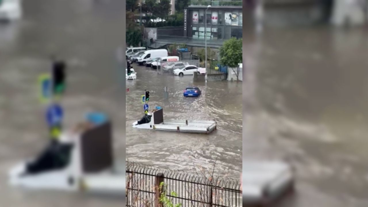 İstanbul’da sağanak yağış etkisini gösterdi. Kuvvet yağış Başakşehir ve Küçükçekmece’de su baskınlarına neden oldu. Yağmur suları nedeniyle araçlar sulara gömüldü. O anlar kameralara yansıdı.