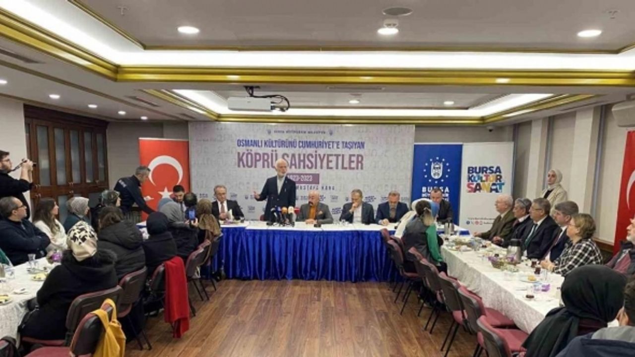 Bursa’yı değerleriyle geleceğe taşıyan Büyükşehir Belediyesi, somut olmayan kültürel mirasa katkılarına yeni yayınlarla devam ediyor. Kenti fiziki açıdan yenilerken aynı zamanda şehrin köklü kültürel birikimine de eserler sunan Büyükşehir Belediyesi tarafından kent belgeliğine kazandırılan “Osmanlı Kültürünü Cumhuriyet’e Taşıyan Köprü Şahsiyetler” kitabının tanıtımı, Tayyare Kültür Merkezi’nde yapıldı. Bursa Büyükşehir Belediyesi Başkanvekili Fethi Yıldız, İl Kültür Turizm Müdürü Kamil Özer ve İl Milli Eğitim Müdürü Ahmet Alireisoğlu’nun katıldığı törende konuşan kitabın yazarı Prof.Dr. Mustafa Kara, Osmanlı’dan günümüze kültür aktarımının nasıl sağlandığını anlattı.