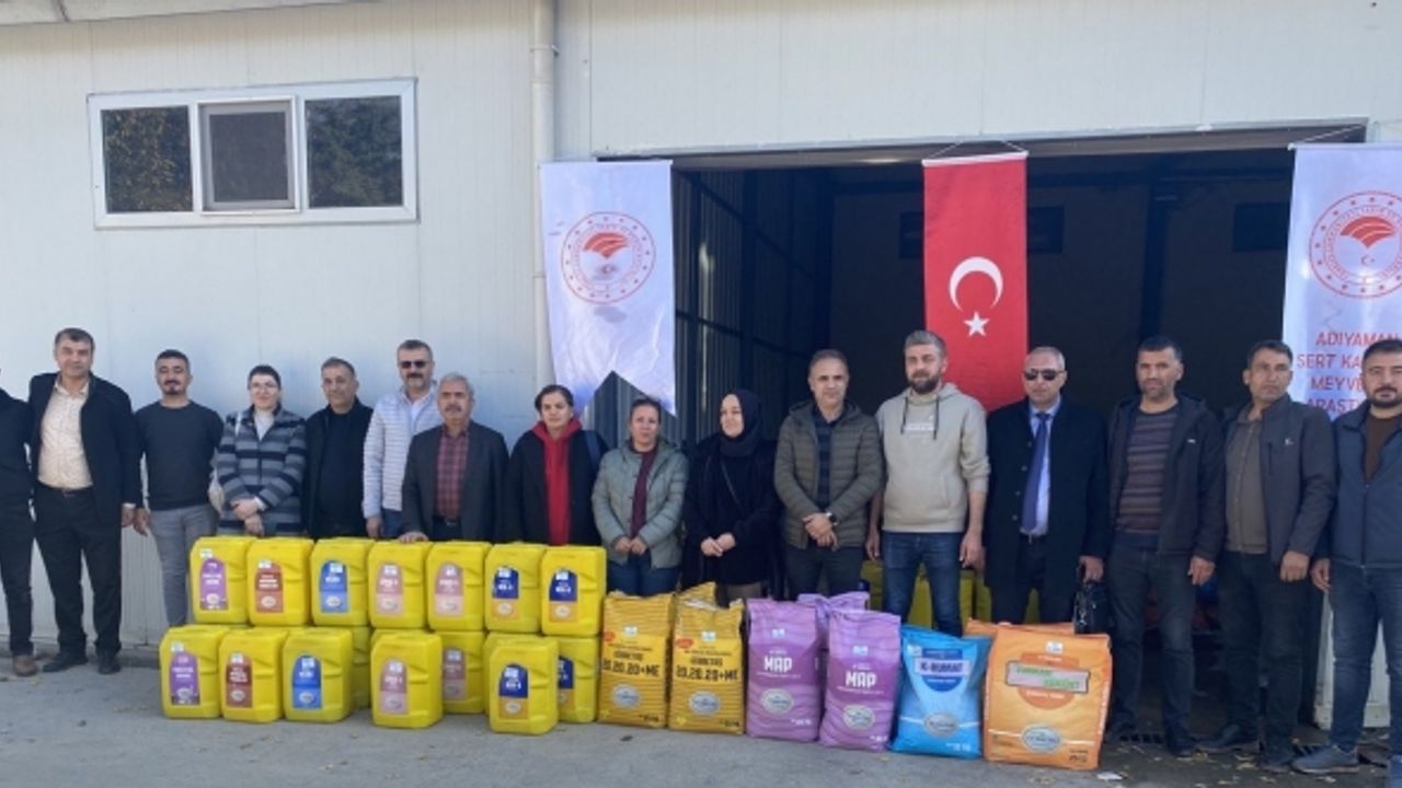 Adıyaman Sert Kabuklu Meyveler Araştırma Enstitüsü Müdürlüğü tarafından gerçekleştirilen proje çerçevesinde kurulan modern badem bahçeleri için gübre dağıtımı yapıldı.