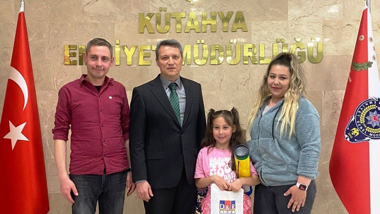 Kütahya İl Emniyet Müdürü Hakan Sıralı, yazmayı öğrendikten sonra kendisine yeni yıl kutlama kartı gönderen Şehit Semih Akyıldız İlkokul 1/C sınıfı öğrencisi İkra Yabaş’ı makamında misafir etti.