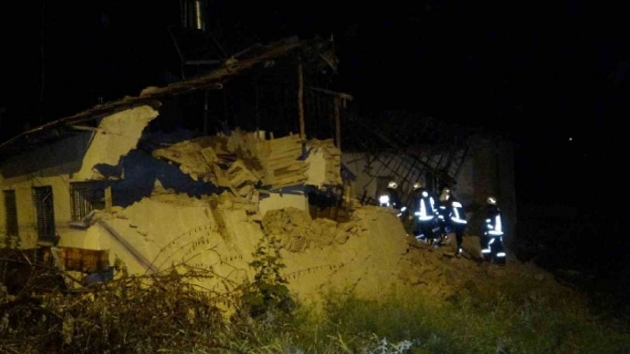 Evin geriye kalan kısımlarının da çökme ihtimaline karşın olay yerine güvenlik şeridi çekilirken, ekipler çalışmalarını tamamladı.