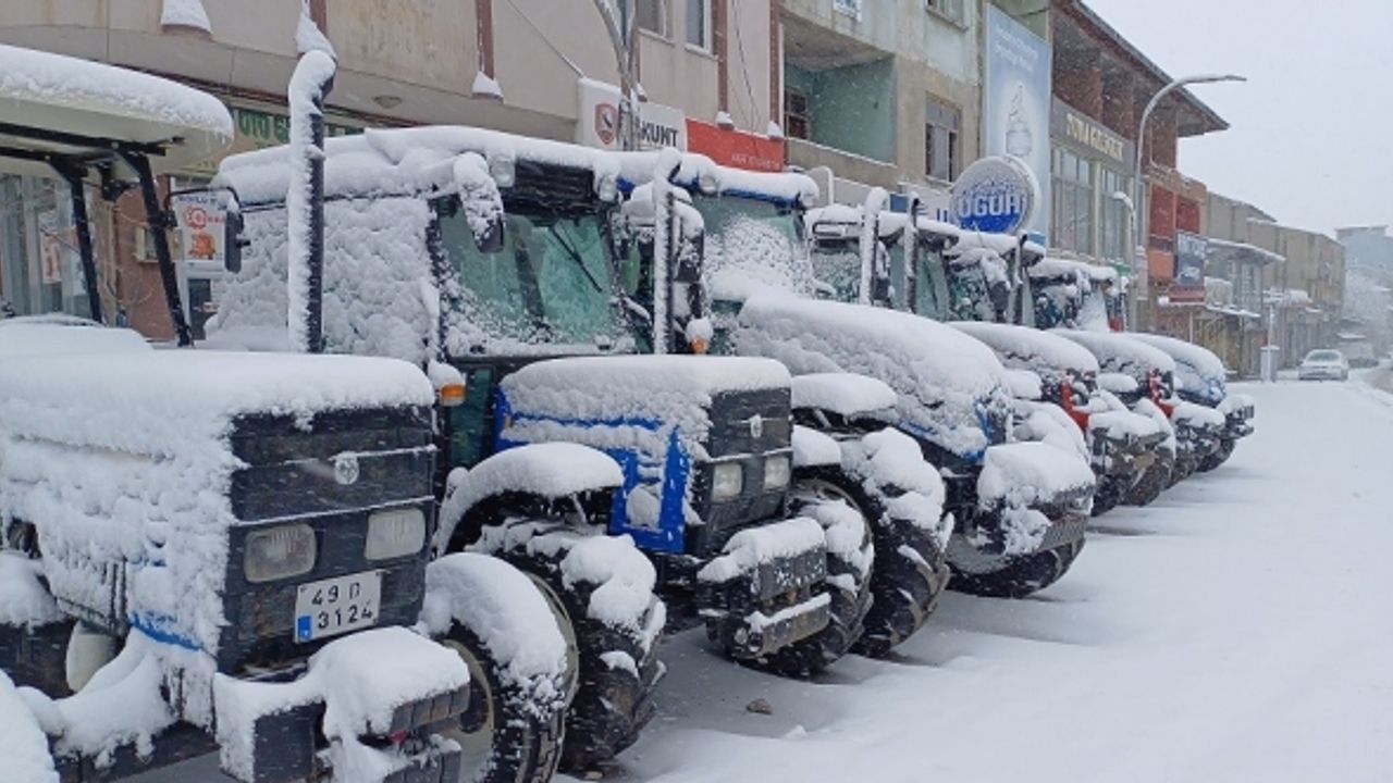 Muş’un Malazgirt ilçesinde etkili olan kar yağışıyla birlikte kent merkezi beyaza bürünürken, 33 köy yolu ise ulaşıma kapandı.