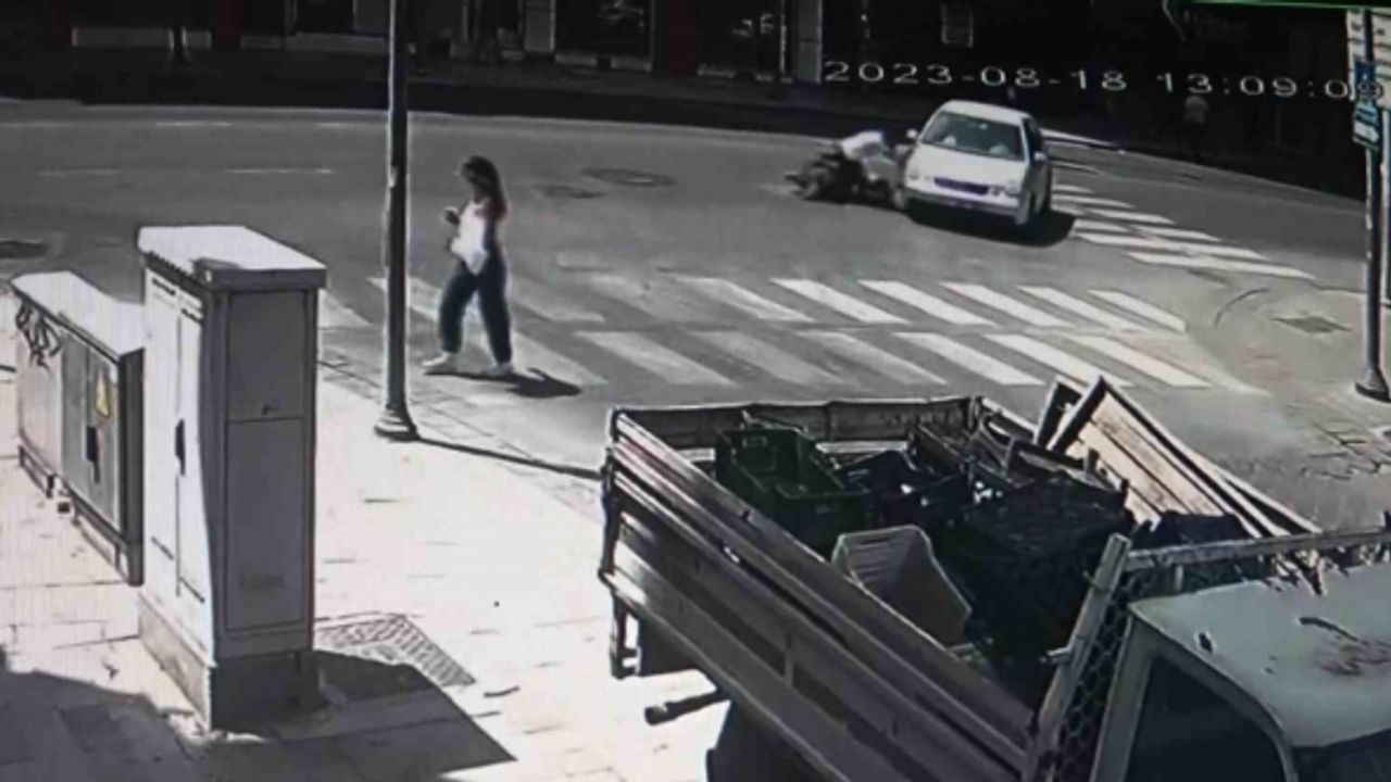 Denizli’nin Pamukkale ilçesinde manevra yapan otomobile çarpan motosiklet sürücü ağır yaralandı. Kaza anı bölgedeki bir işletmenin güvenlik kamerasına saniye saniye yansıdı.