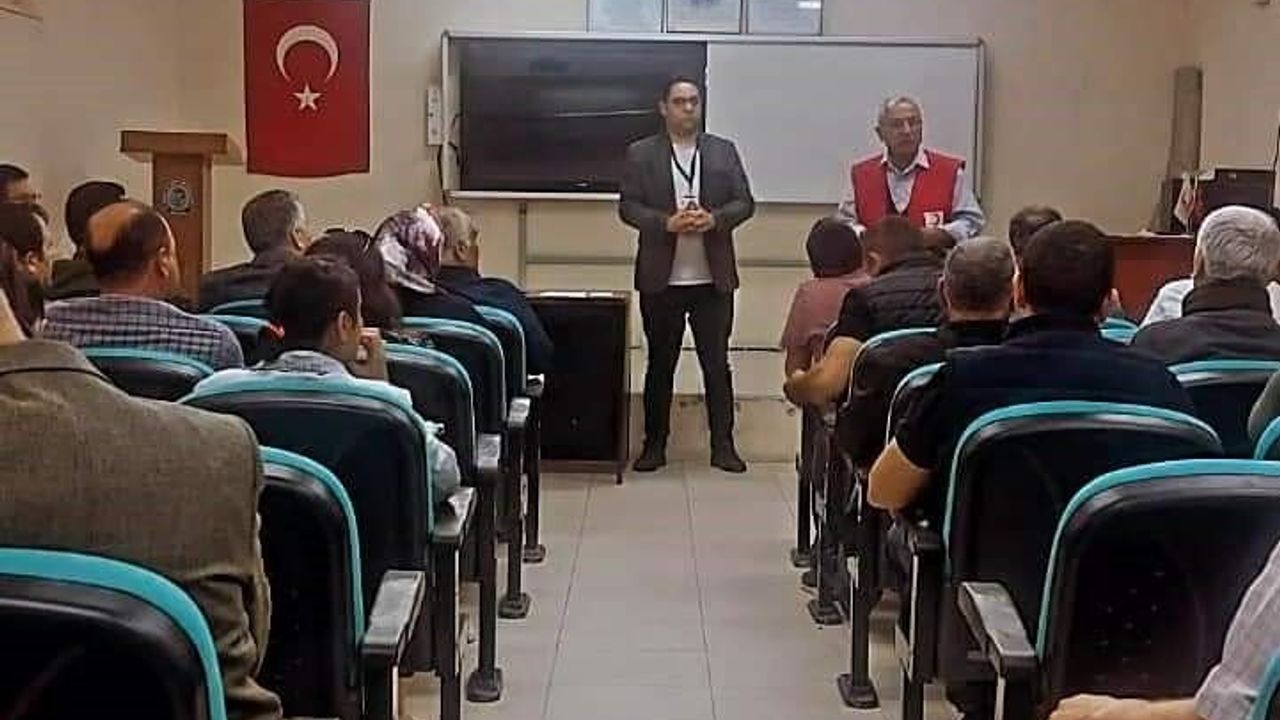 Sarıgöl Mesleki ve Teknik Anadolu Lisesi Toplantı Salonunda düzenlenen bilgilendirme toplantısında Sarıgöl Türk Kızılayı İlçe Koordinatörü Yusuf Tüfekçi tarafından katılımcılara bilgiler verildi.