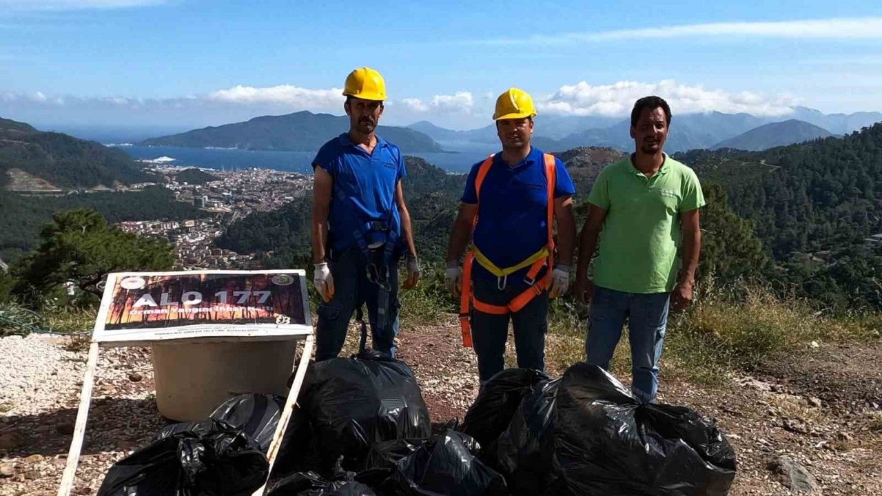 Sevgi Yolu, Çeşme Meydanı, Yat Limanı Atatürk Meydanı gibi Marmaris’in merkezi noktalarının yanı sıra uzak mahallelerde de çalışma başlatan ekiplerin dünkü durağı Bozburun ve Selimiye oldu. Bunun yanı sıra Gökbel Seyir Tepesi, plajlar ve MUSKİ ile birlikte derelerde temizlik yapıldı. Seyir tepesinde bellerine ip bağlayarak aşağı inen ekipler orman içine atılan çöpleri topladı. Pet şişe, cam şişe, plastik atık gibi çok sayıda çöpü toplayan ekipler bir de koltuk çıkardı. Seyir tepesinden çıkarılan en ilginç madde ise uyarı tabelası oldu. Marmaris Orman İşletme Müdürlüğü tarafından orman yangınlarına dikkat çekmek için asılan tabela da ormanın içine atılmış olarak bulundu.
