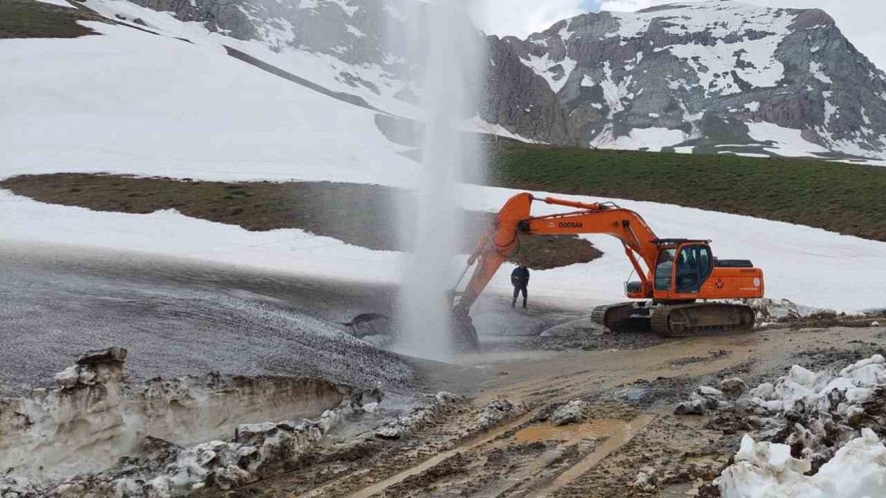 Hakkari’nin 3 bin 500 rakımlı Berçelan Yaylası’nda karların erimesi ve toprak kayması nedeniyle kentin içme suyu ihtiyacını sağlayan 450’lik borunun patlaması üzerine belediye ekipleri çalışma başlattı.