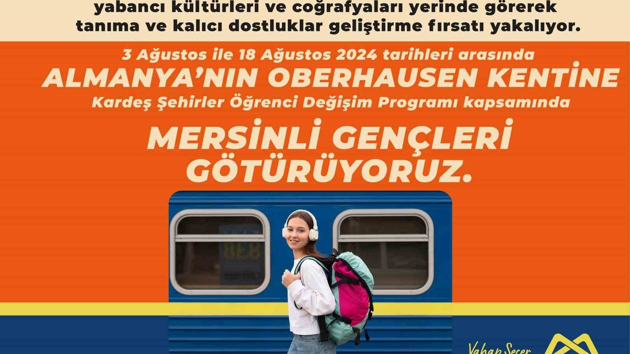 Mersin Büyükşehir Belediyesi, ‘uluslararası kardeşlik, uluslar ötesi birlik’ mottosuyla ’Kardeş Şehir Öğrenci Değişim Programı’ kapsamında Mersinli gençleri Almanya’ya götürecek.