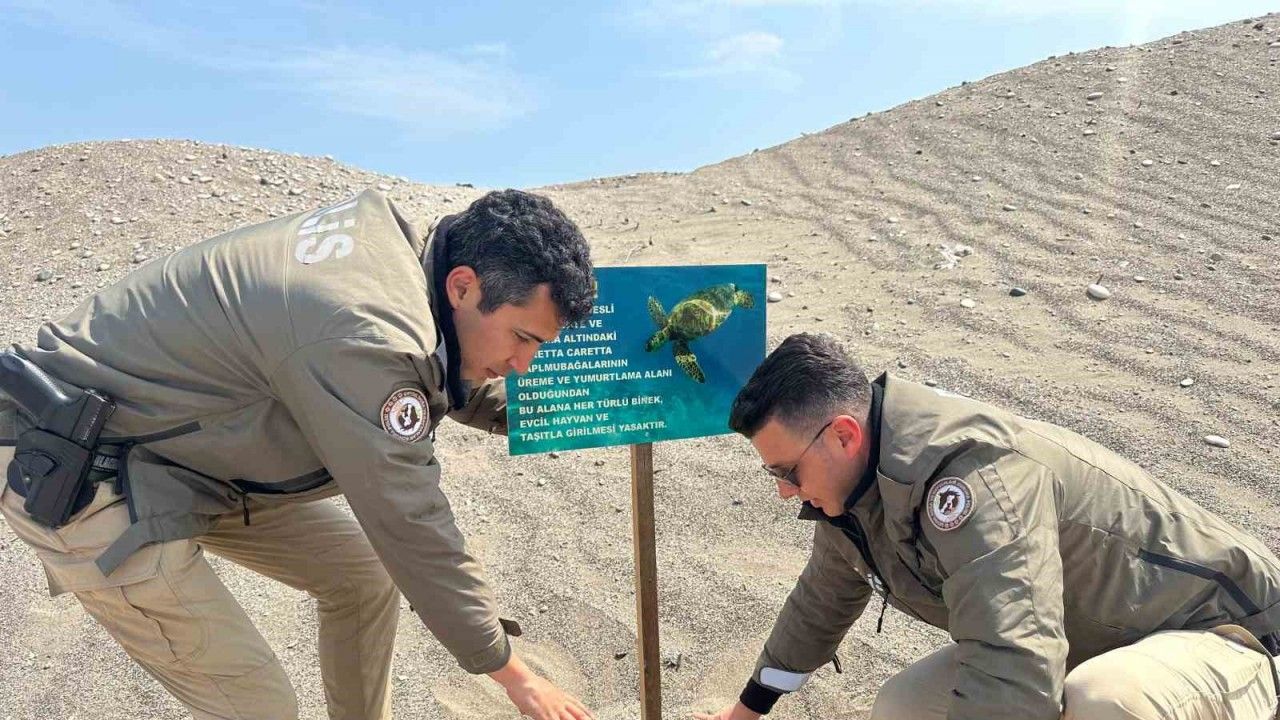 Mersin polisi, Kazanlı sahilindeki careta caretta deniz kaplumbağalarının yumurtlama alanlarına bilgilendirme levhaları astı.