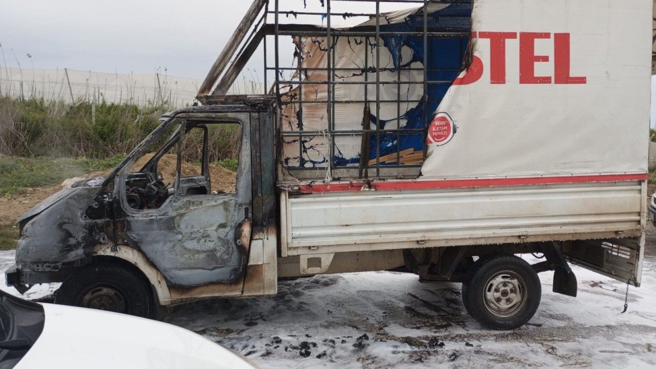 Mersin’in Tarsus ilçesinde ticari araç yanarak kullanılamaz hale geldi.