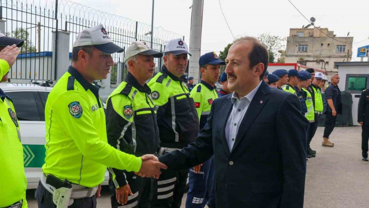 Ülke genelinde olduğu gibi Mersin’de de Ramazan Bayramı nedeniyle vatandaşların 9 günlük tatillerini huzurlu ve güvende geçirmesi için ek tedbirler alındı. Özellikle trafik yoğunluğunun yaşandığı bölgelerde uygulamalar yoğunlaşarak vatandaşlar hem polis hem de jandarma ekipleri tarafından bilgilendirilmeye başlandı. Vali Ali Hamza Pehlivan’da, Mersin-Antalya D-400 karayolunda Erdemli İlçesi Çeşmeli kontrol noktasında denetim yapan ekipleri ziyaret etti. İl Emniyet Müdürü Kamil Karabörk, İl Jandarma Komutanı Tuğgeneral Ercan Atasoy ile Erdemli Kaymakamı Aydın Tetikoğlu’nun eşlik ettiği Vali Pehlivan, araçlarıyla geçen vatandaşları trafik tedbirleri ile ilgili hatırlatmalarda bulunarak bayramlarını tebrik etti.