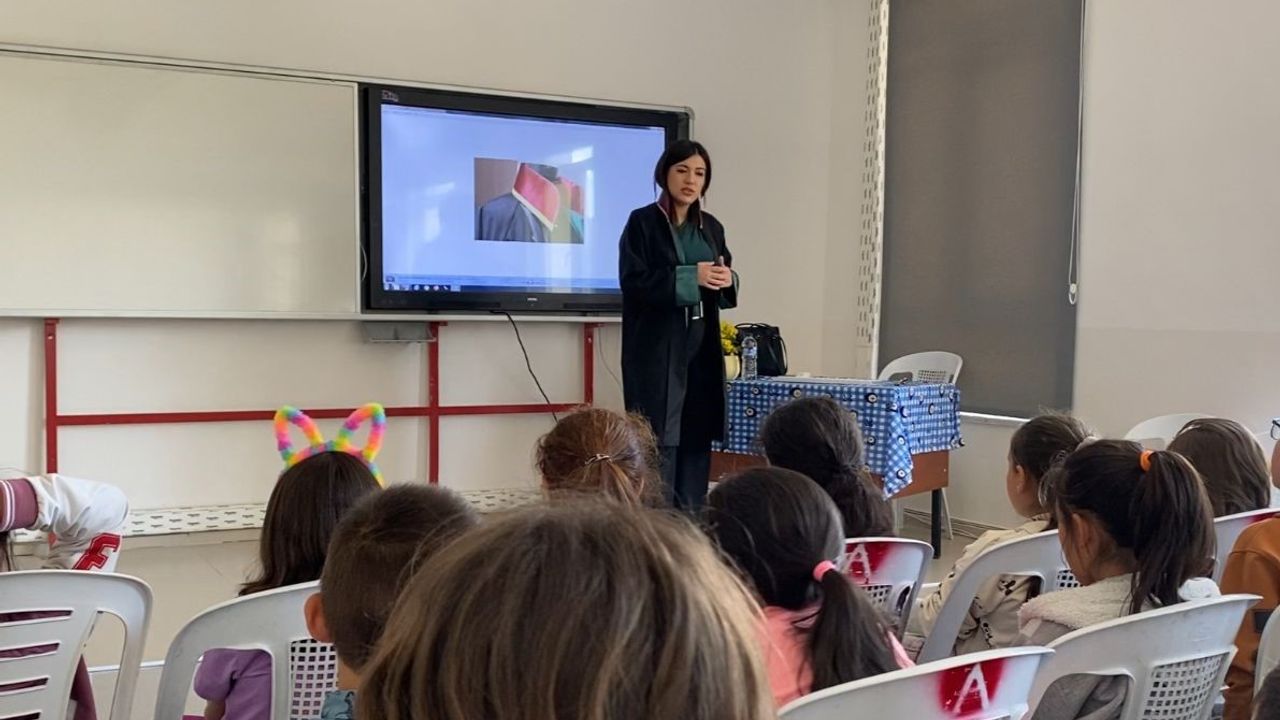 Avukat Fatma Altay, mezun olduğu Atatürk İlkokulunda 4. Sınıf öğrencilerine “Meslekleri Tanıma” projesi çerçevesinde avukatlık mesleği hakkında bilgiler verdi, öğrencilerden gelen soruları yanıtladı.
