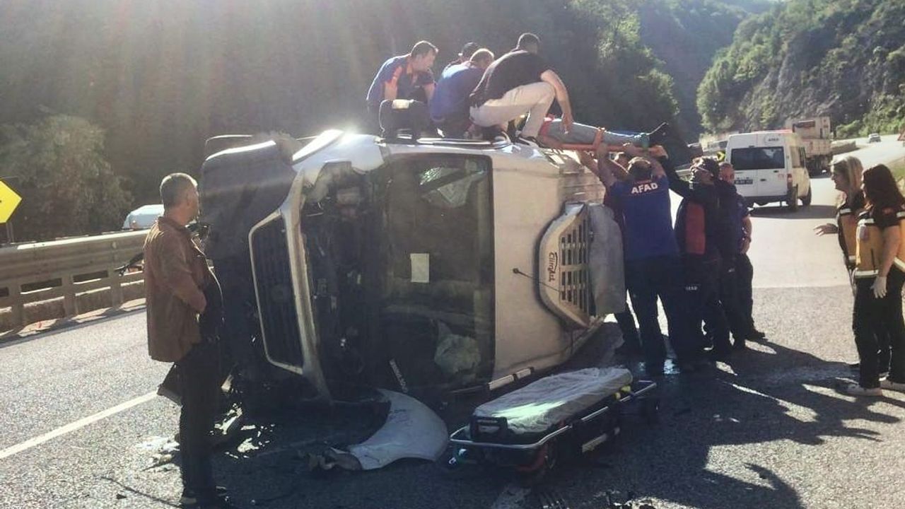 Kaza, Bursa-Ankara karayolu Mezit boğazında meydana geldi. Bozüyük istikametinden İnegöl istikametine seyir halinde Samet A. (19) idaresindeki 34 KIE 026 plakalı minibüs, sürücüsünün kontrolünden çıktı. Bariyerlere çarpan araç kazanın şiddetiyle devrildi, sürücü yaralandı. Çevredekilerin ihbarı üzerine kaza yerine AFAD, sağlık ve jandarma ekipleri sevk edildi. Minibüste sıkışan sürücü AFAD yardımıyla çıkarıldı. Yaralı Samet A. ambulansla Bozüyük Devlet Hastanesine kaldırıldı. Jandarma komutanlığı ekipleri kazayla ilgili soruşturma başlattı.