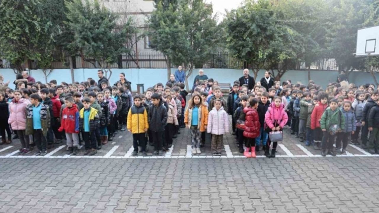 Hatay’ın İskenderun ilçesinde ilkokul öğrencileri, şehit olan askerler için saygı duruşunda bulunarak, İstiklal Marşı okudular.
