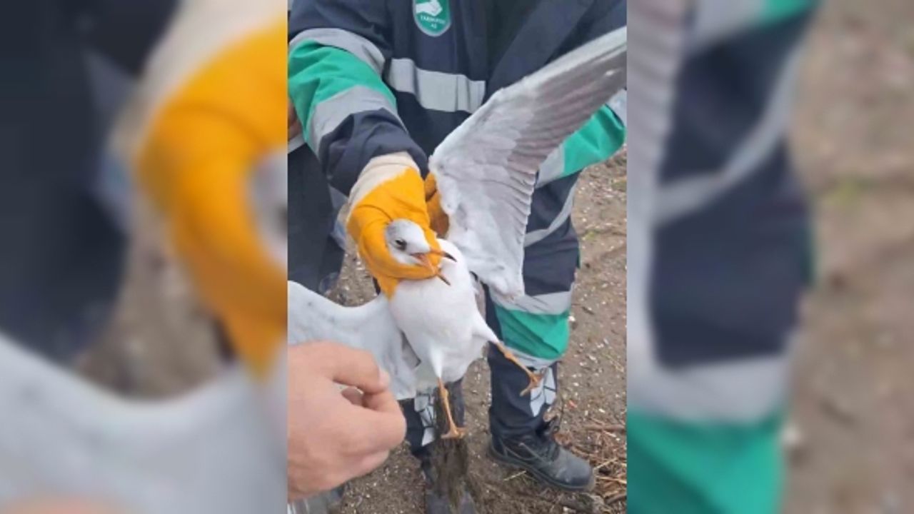 Bursa’nın Gemlik ilçesinde misinaya dolanan martının yardımına ekipler yetişti. Misinayı keserek kancalardan kurtarılan mantı tedavisinin ardından tekrar doğaya salındı.