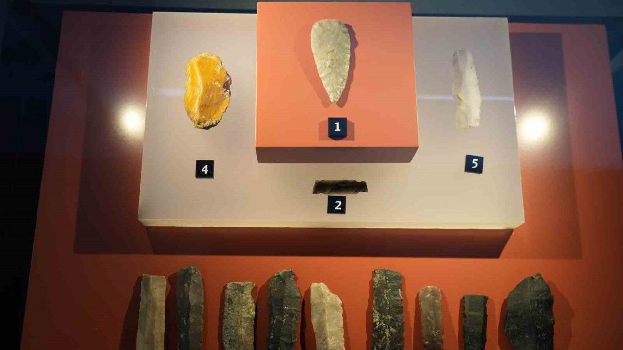 MÖ 5900-3200 yılları arasındaki Kalkolitik Çağ’a ait volkanik cam kaya dilgi de müzede yer alıyor