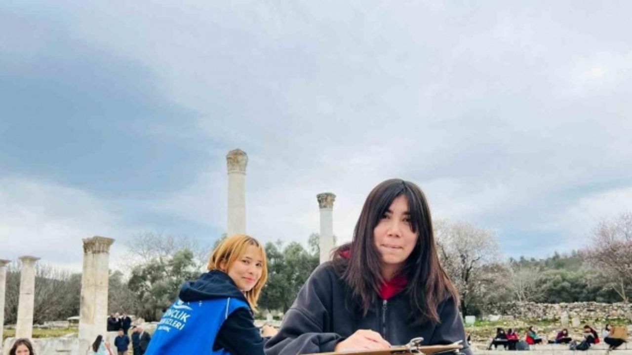 Muğla’da gençler Yatağan Stratonekia Antik kentinde açık hava resim atölyesi oluşturdu. Gençler Stratonekia ‘da bulunan tarihi yapıları kara kalem olarak çizime aldı.