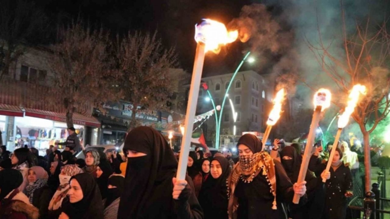 Muş’ta HÜDA-PAR Gençlik Kolları Başkanlığı ve Peygamber Sevdalıları Platformu tarafından düzenlenen "Gazze’ye Işık Ol" meşaleli yürüyüşü kent meydanında başladı. İsrail’in Gazze’ye yönelik saldırılarını protesto etmek için bir araya gelen yüzlerce vatandaş, İsrail aleyhinde slogan atarak meşalelerle İmamı Şafi Camisi’ne kadar yürüdü. Grup adına açıklamayı okuyan İbrahim Arpa, "Siyonist işgal rejimi dünya kamuoyunun tepkilerine rağmen 92 gündür Gazze’de katliam ve soykırıma devam etmektedir. Bu vahşet ve soykırım dünyaya özgürlük ve medeniyet satan başta Amerika, İngiltere ve Avrupa ülkeleri olmak üzere küresel güçler tarafından her şekilde desteklenmekte ve himaye edilmektedir. Bundan almış olduğu cesaretle her gün saldırganlığın artırarak bütün bölgeyi ateşe vermeye çalışmaktadır. Son dönemde birçok İslam ülkesine yönelik saldırılarda bulunan Siyonist çete Müslümanların yaşadığı tüm coğrafyayı ateşe vermek isteyen bir canavara dönüşmüştür. Derhal durdurulmasa gerekmektedir" dedi.