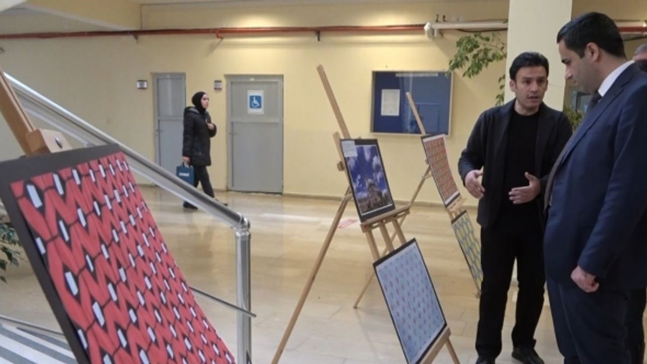 Öğrencilerin 12 haftada hazırladığı 27 eser, eğitim fakültesinde sergilendi. Serginin koordinatörü Doç. Dr. Yılmaz Mutlu, "İslami Geometrik Süslemeler" dersi kapsamında hazırlanan eserlerin sergilendiğini ifade ederek, ilk defa böyle bir serginin açıldığını söyledi. Mutlu, "Bizler matematik eğitimcileri olarak aslında İslami geometrik süslemelerini ele aldık. Süslemelerin doğrudan matematik ve geometri öğretiminde kullanılabilmesine yönelik bir entegre sürecini gerçekleştirmeye çalıştık. Öğrencilerin sergide yer alan eserlerinin tamamı ders kapsamında hazırlandı. Görselleri tasarlayarak aslında matematikle bütünleştiğini gösterdik. 12 haftalık bir sürede süslemeleri hazırladık. Öncelikle çizim tekniklerini, daha sonra bunu matematik dersine nasıl entegre edeceğimizi ders planları kapsamında hazırlandık. Bu doğrultuda çizimler yapılarak boyamalar gerçekleştirildi. Her bir arkadaşımız aslında birden fazla eser yaptı. Şu an burada 27 farklı eser bulunmaktadır" dedi.