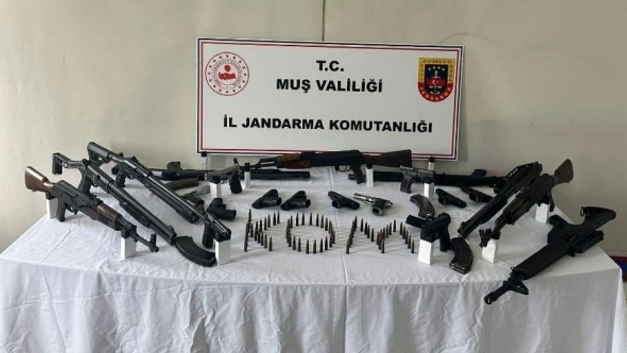 Muş Valiliğinden yapılan açıklamada, İl Jandarma Komutanlığınca yürütülen ‘silah ve mühimmat kaçakçılığı ile mücadele’ faaliyetinin devam ettiği belirtildi. Açıklamada, “Yapılan çalışmalar neticesinde; 5 adet kalaşnikov piyade tüfeği, 1 adet G1 piyade tüfeği, 15 adet tabanca, 9 adet ruhsatsız av tüfeği, 13 adet kalaşnikov piyade tüfeği şarjörü, 14 adet tabanca şarjörü, 460 adet kalaşnikov piyade tüfeği fişeği, 623 adet tabanca fişeği, 3 adet kurusıkı tabanca, 2 adet kama, 1 adet muşta, ele geçirilmiştir. Bahse konu olayda ele geçirilen malzemelere el konulmuş, 18 şüpheli hakkında adli işlem yapılmış, 5 şüpheli ise tutuklanarak cezaevine gönderilmiştir” denildi.