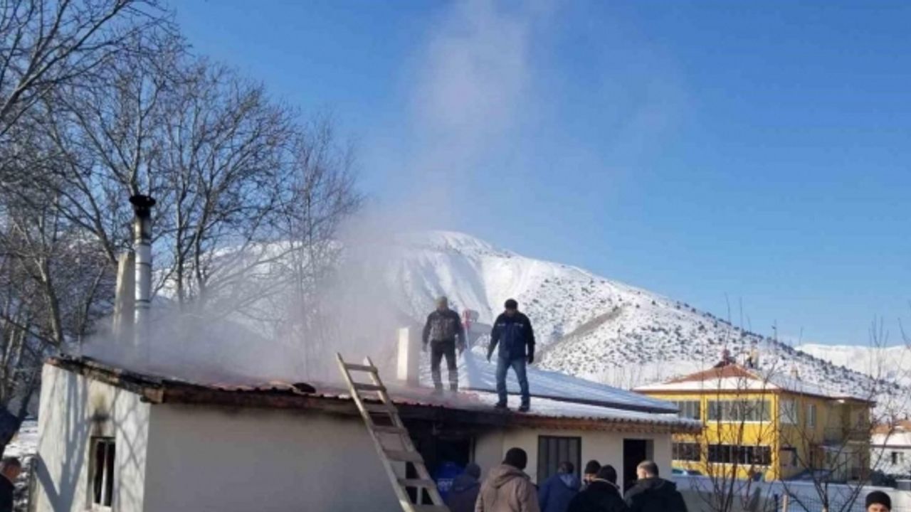 Erzincan’ın Çağlayan Beldesinde müstakil evin çatı kısmı yandı.