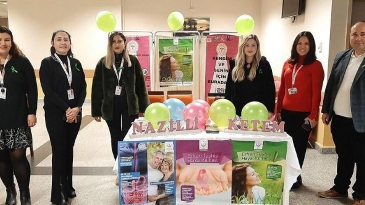 Aydın İl Sağlık Müdürlüğü koordinesinde kanser farkındalık ayı çerçevesinde bilgilendirmeler devam ediyor. Bu çerçevede Nazilli İlçe Sağlık Müdürlüğü ekipleri, Nazilli Devlet Hastanesi’nde farkındalık etkinliği gerçekleştirdi. Hastane poliklinik girişinde açılan stant ile kadınlar rahim ağzı kanseri konusunda bilgilendirildi. Kanserde erken teşhisin önemi de vurgulanırken, vatandaşlara bilgilendirici broşürler dağıtıldı.