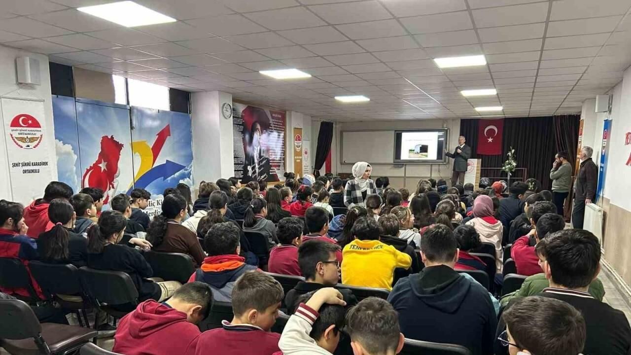 Afyonkarahisar Tarım ve Orman İl Müdürlüğü tarafından 22 Mart Dünya Su Günü kutlamaları çerçevesinde; Afyonkarahisar Şehit Şükrü Karadirek Ortaokulu öğrenci ve öğretmenlerinin katılımı ile su tasarrufuna giden yol haritasına yönelik su verimliliği yaklaşım ve politikalarının anlatıldığı eğitim çalışması gerçekleştirildi.