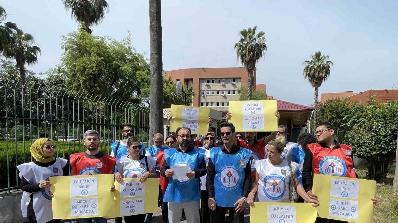 İstanbul Eyüpsultan’daki Final Anadolu Lisesinde okul müdürü İbrahim Oktugan’ın (74) öldürülmesine tepki gösteren sendika üyeleri, Adana Valiliği önünde toplandı. Ellerinde ’Eğitim için birlik’, ’Şiddete karşı mücadele’, ’Eğitim kutsaldır, ona zarar verme’ yazılı dövizler taşıyan öğretmenler, basın açıklaması yaptı. Eğitim çalışanlarının karşılaştığı şiddet olaylarına dikkat çekmek ve bu soruna çözün bulunması için seslerini duyurmak adına bir araya geldiklerini belirten öğretmen Yusuf Koçak, "Eğitim kurumlarında görev yapan öğretmenler, idareciler ve eğitim çalışanları olarak artan şiddet vakaları karşısında sessiz kalmayı reddediyoruz. Son dönemde eğitim kurumlarında yaşanan şiddet olaylarının artması sadece bireysel bir sorun değil, toplumsal bir sorun haline gelmiştir. Bu sorunun biran önce çözülmesini istiyoruz. Eğitimde şiddete dikkat çekmek amacıyla 10 Mayıs’ta iş bırakma eylemi gerçekleştireceğiz" ifadelerini kullandı.