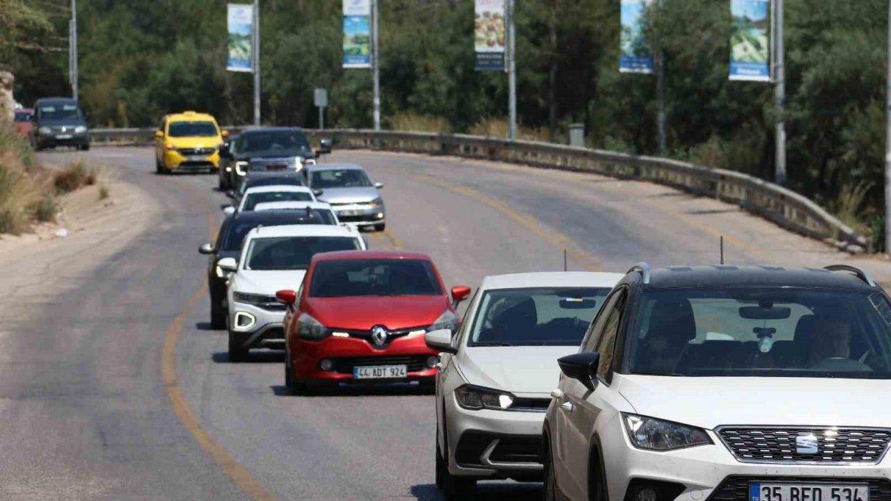 Ramazan Bayram tatilini sahillerde geçirmek isteyenler, Fethiye ilçesindeki Ölüdeniz yolunda yaklaşık 3 kilometrelik araç kuyruğu oluşturdu.