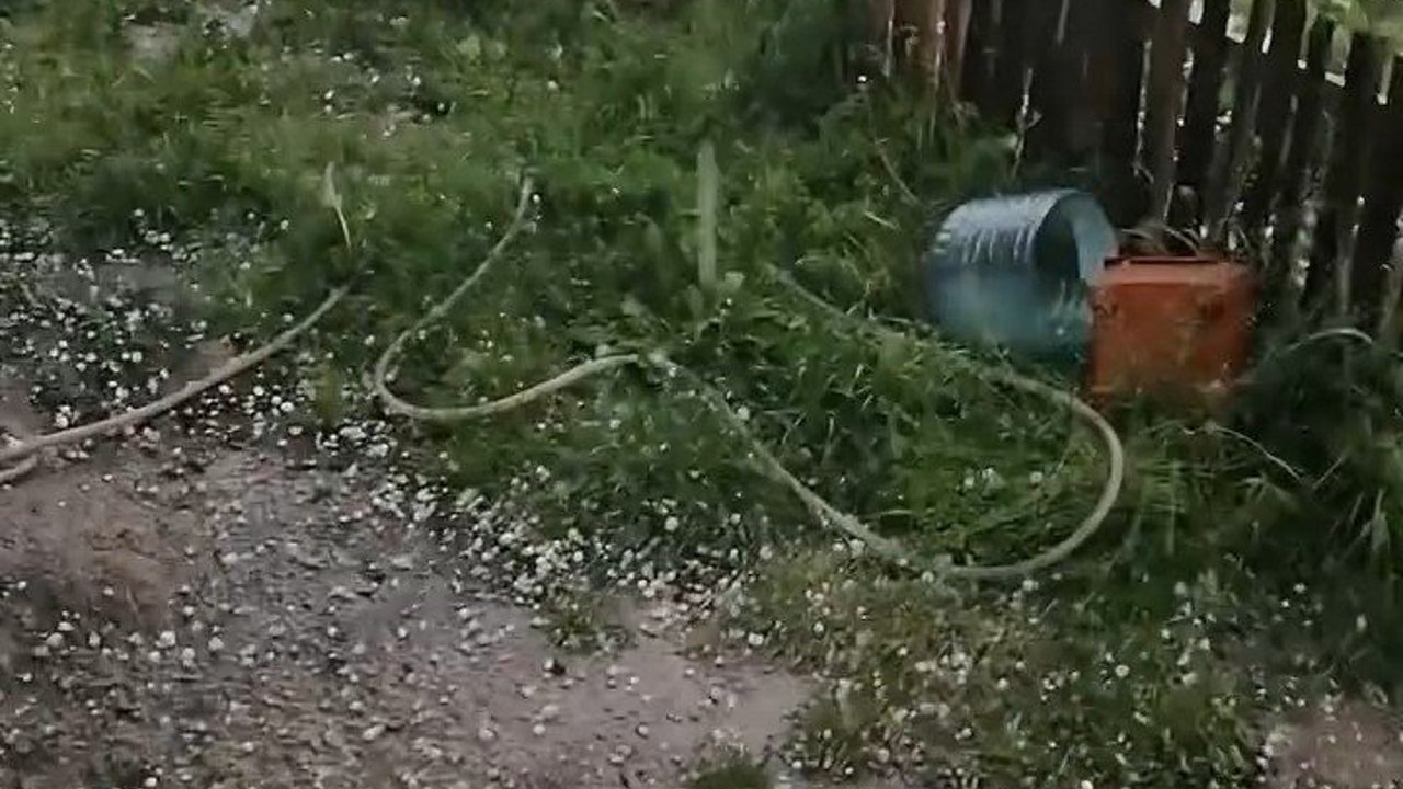 Çorum’un Osmancık ilçesinde yağan ceviz büyüklüğündeki dolu ile tarla ve bahçeler beyaza büründü.