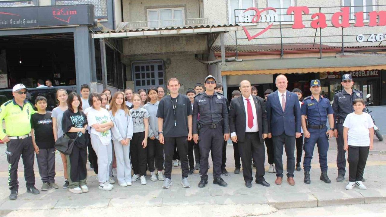 Uygulamada sürücüler ve öğrenciler ile sohbet eden Kaymakam Ünal, trafik kurallarının önemine dikkati çekti.